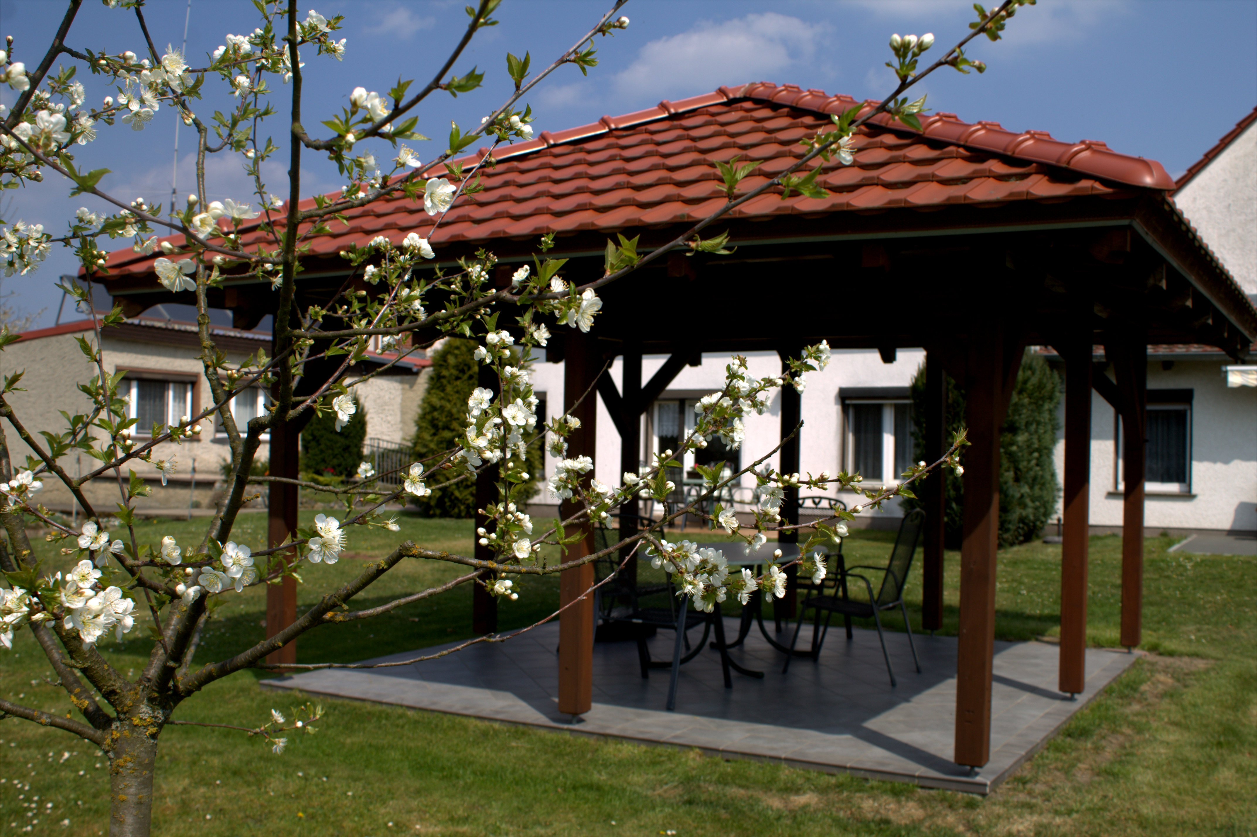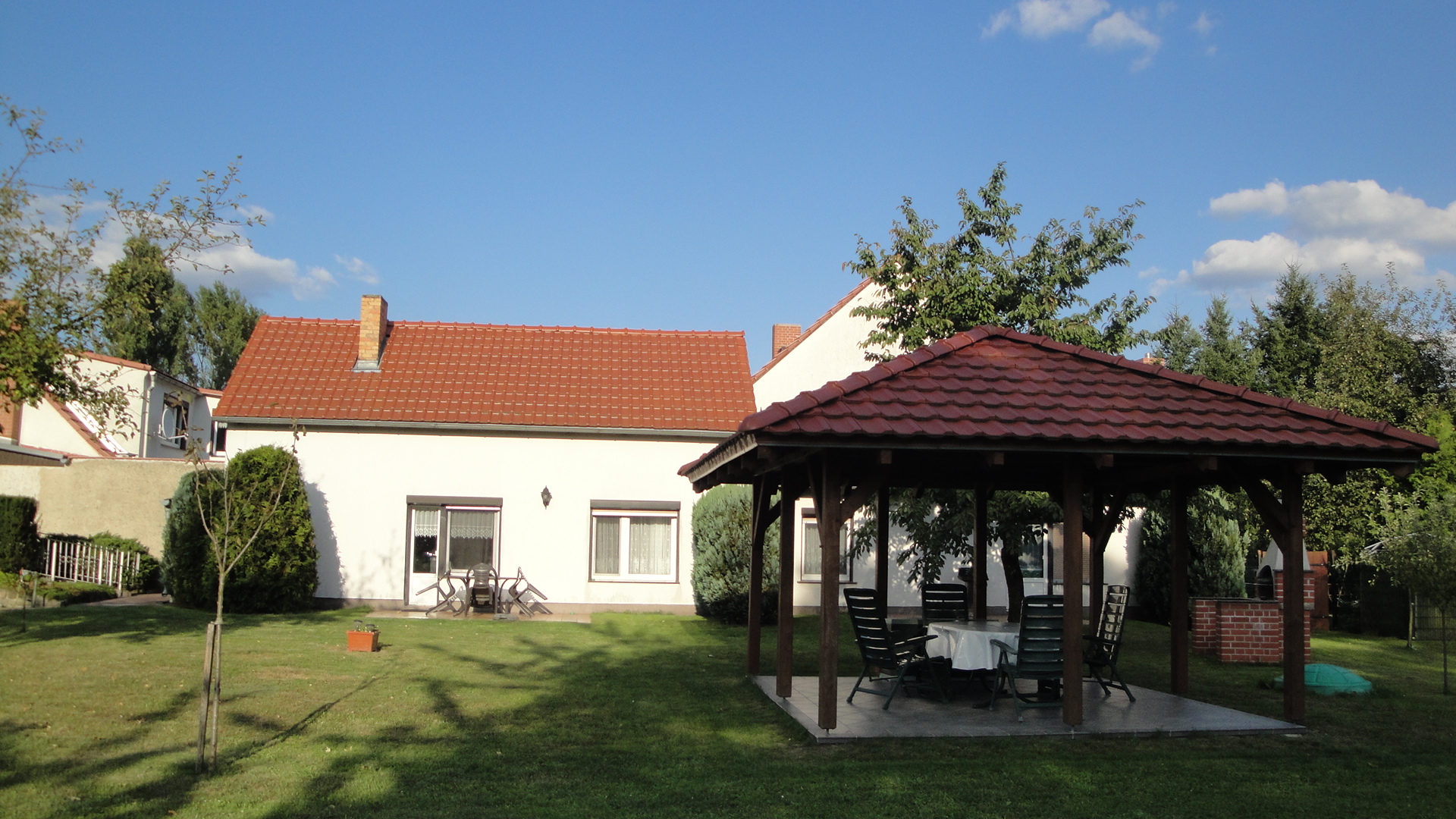 Des weiteren stehen Ihnen u.a. die Terrasse mit Sitzgruppe, ein großer Teich mit Sitzgruppe sowie der Grillplatz mit Holzpavillon und eine Liegewiese zur Verfügung.